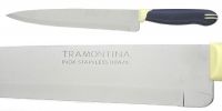 Твёрдость стали позволяет уйти от стереотипа "лезвие должно быть толстым". Используя более тонкие и закаленные лезвия, Tramontina добивается высокой эффективности и низкой себестоимости ножа.