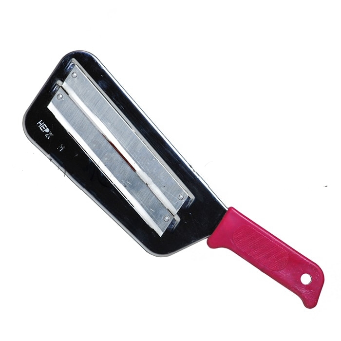 Секач имеет металлический корпус и 2 металлических лезвия, а ручка выполнена из пластмассы. Такая металлическая конструкция обеспечивает надежность и долговечность данного изделия.