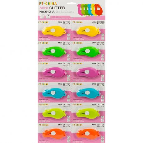Мініатюрний канцелярський ніж — зручний і безпечний інструмент для щоденного використання вдома, в офісі чи на навчанні. Гостре лезо товщиною 0,4 мм ідеально підходить для різання паперу, скотчу, пакування та інших матеріалів. Висувний механізм із фіксацією забезпечує комфорт і безпеку. Яскраві кольори (жовтий, зелений, рожевий, блакитний, помаранчевий) роблять ніж привабливим. Упаковка — 12 штук на блістері, 720 штук у коробці. Ідеальний вибір для гуртових закупівель.