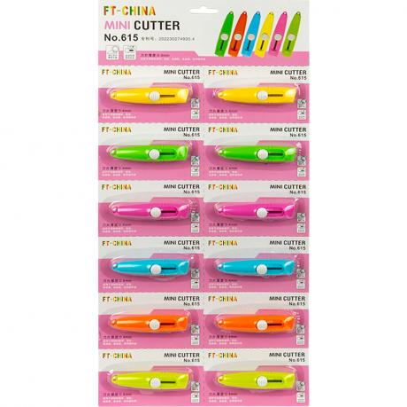 Мініатюрний канцелярський ніж — зручний і безпечний інструмент для щоденного використання вдома, в офісі чи на навчанні. Гостре лезо товщиною 0,4 мм ідеально підходить для різання паперу, скотчу, пакування та інших матеріалів. Висувний механізм із фіксацією забезпечує комфорт і безпеку. Яскраві кольори (жовтий, зелений, рожевий, блакитний, помаранчевий) роблять ніж привабливим. Упаковка — 12 штук на блістері, 720 штук у коробці. Ідеальний вибір для гуртових закупівель.