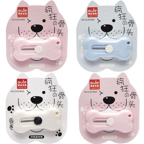 Цей канцелярський ніж має пластиковий корпус довжиною 6,5 см. Він оснащений автоматичним пластиковим фіксатором леза.
