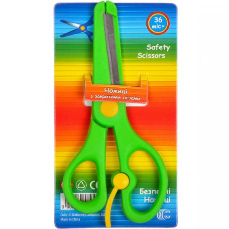 Ці ножиці призначені для роботи з папером. Вони мають закруглені наконечники та закриті леза, що забезпечує безпеку під час користування. Загальна довжина ножиць становить 13,5 см, а довжина леза - 5 см.