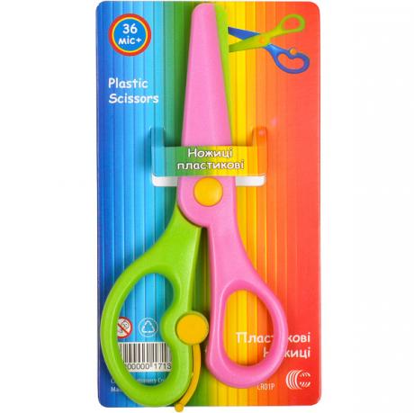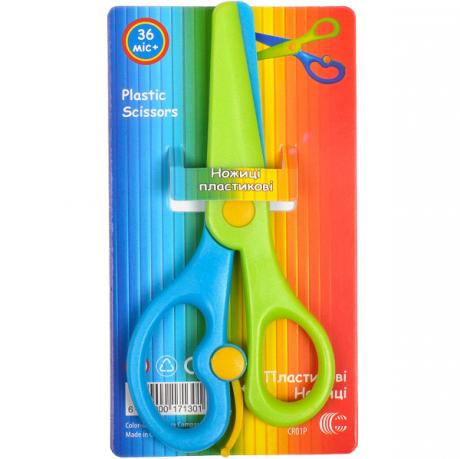 Ці ножиці виготовлені з пластику та оснащені кольоровими ручками. Вони безпечні для використання дітьми і призначені для різання паперу.