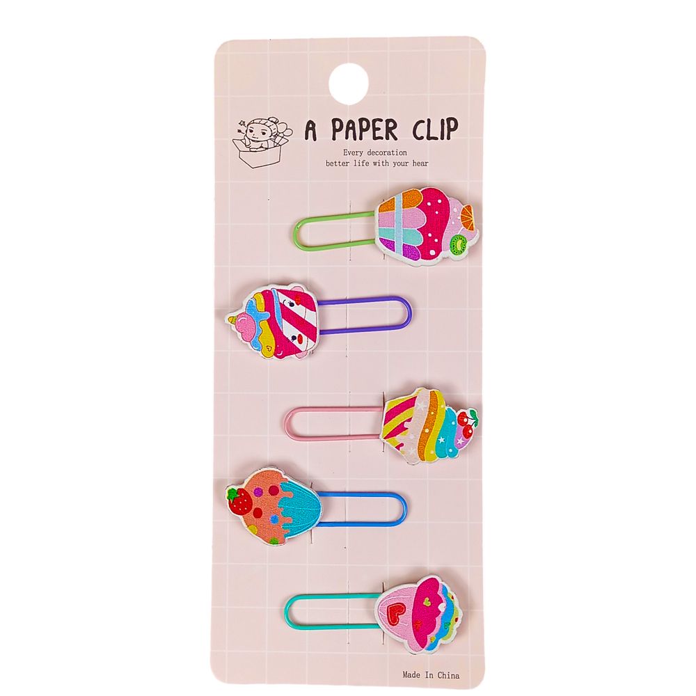 Закладки-скрепки с деревянным декором 5шт "Пирожные" Разноцветный Без бренда (13555)