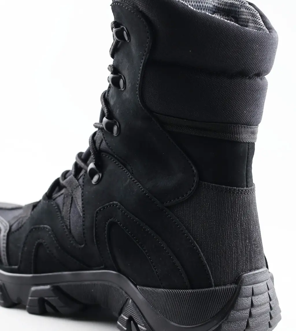 Верх выполнен из гидрофобного натурального нубука и водонепроницаемой ткани Cordura, берцы гарантируют непревзойденный комфорт при активных физических нагрузках. Кожа придает износостойкости, а дышащие свойства ткани обеспечивают вентиляцию, что важно во время длительных задач.