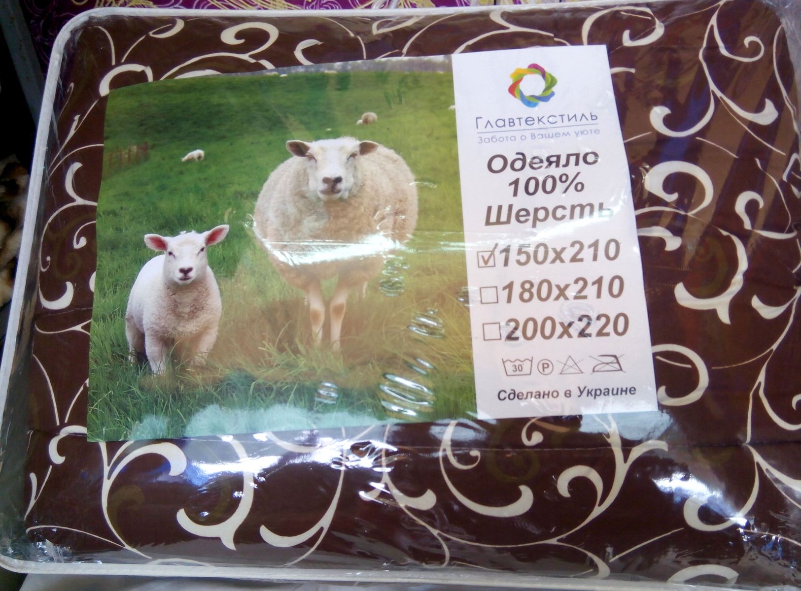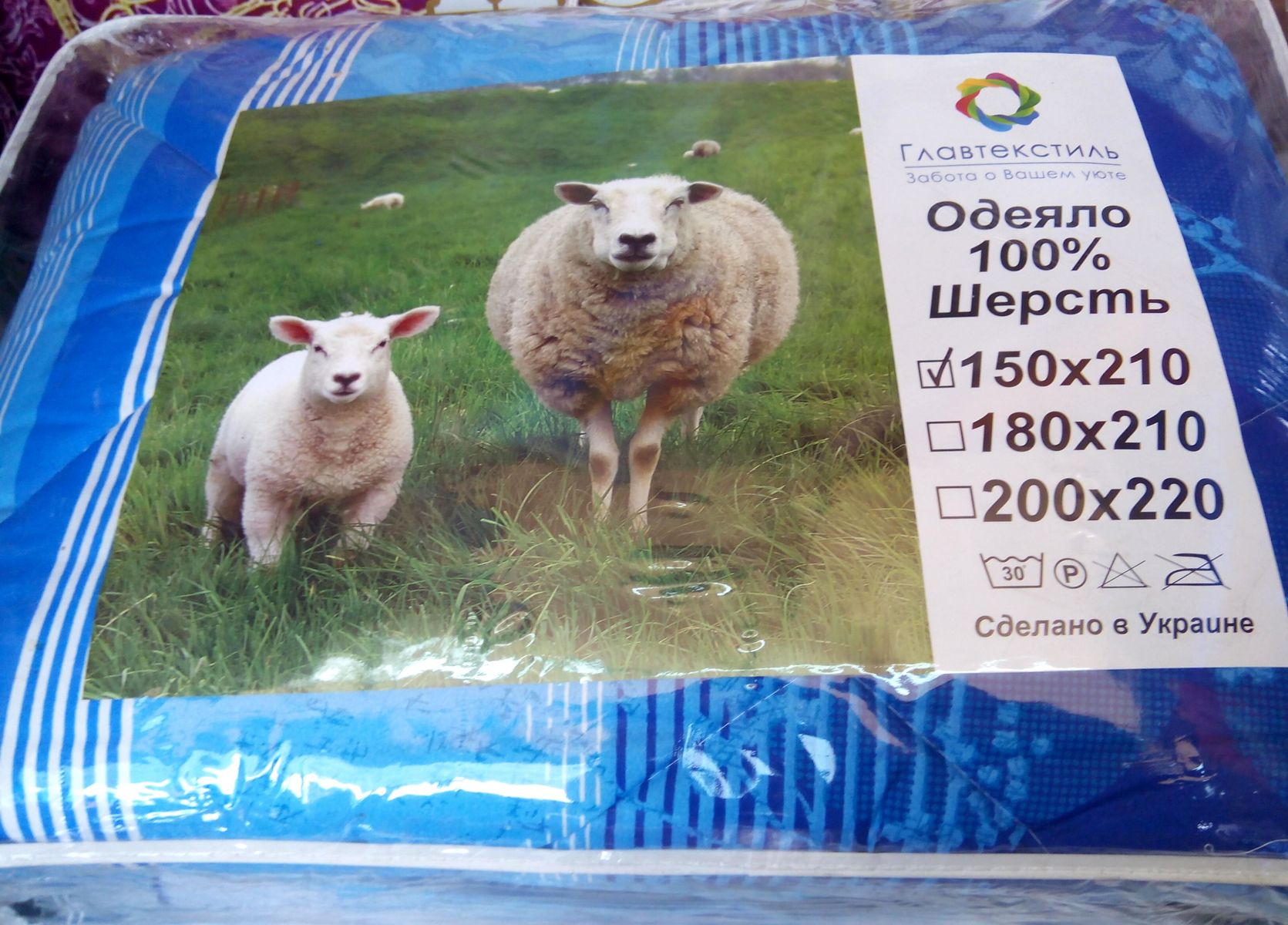Одеяло шерстяное, шерсть внутри, ткань - хлопок, Размер 150х210 см. Цвета и рисунки в ассортименте от производителя