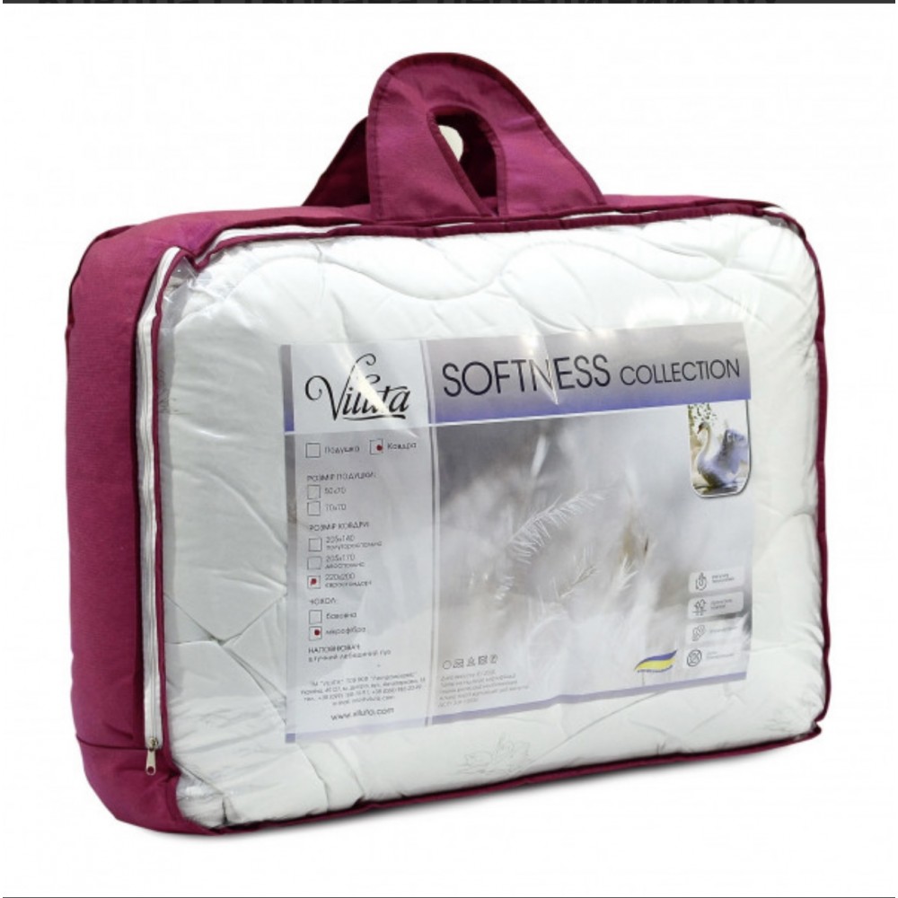 Ковдри з колекції "Soft" відносяться до категорії зимових теплих ковдр. Виконано з екологічно чистих матеріалів і мають здатність не вбирати запах і пил, служать надійним захистом від мікроорганізмів, що викликають алергію. Наповнювач штучний лебединий