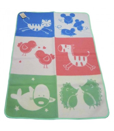 Текстиль имеет красивый дизайн и украшен приятными детскими рисунками на выбор. Края оформлены тесьмой. В состав изделия входит натуральная шерсть новозеландских овец – новозеландская шерсть 70%,хлопок 10%,полиэстер 20%. Поставляется текстиль в удобном полипропиленовом чемоданчике с ручками и застежкой. Такая упаковка практична и выглядит презентабельно для подарка.