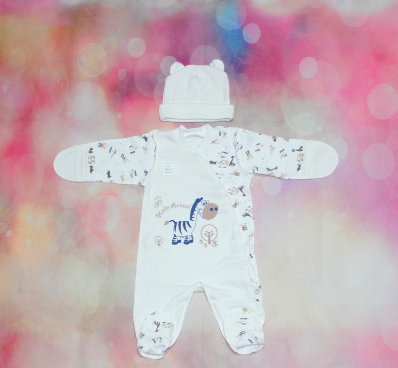 Комбинезон для новорожденных Зефир Цветной/Белый (махра) Размеры 18-24, Артикул: 0043