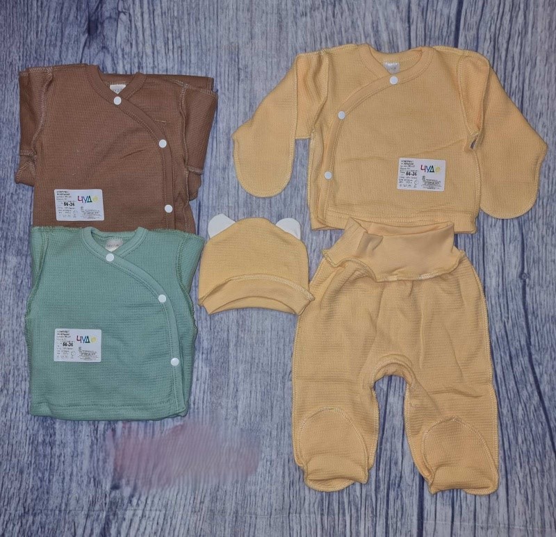 Комплект состоит из кофты, штанишек, шапочки
