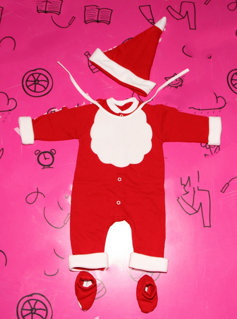 Комплект состоит из человечка, слюнявчика-бороды, шапочки и пинеток. Человечек-материал-футер, оконтовка белая-флис.