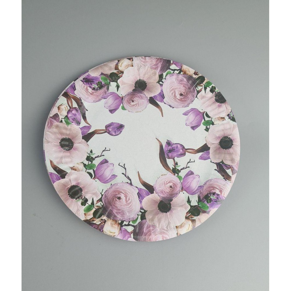 Бумажная тарелка с рисунком 100шт 15*22см"№ 3" Розовый цветочек (1 пачка)