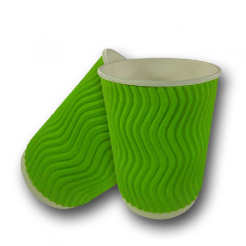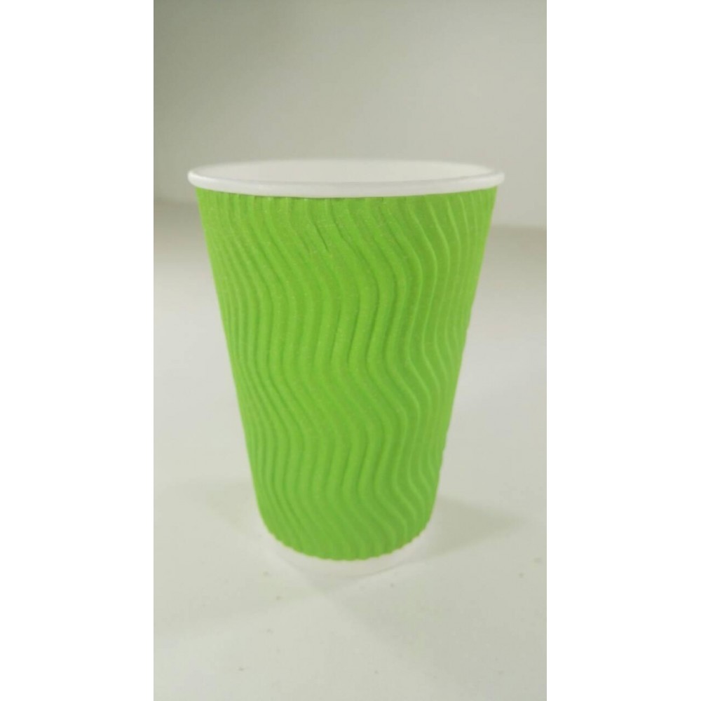 Гофрированный одноразовый стакан под напитки объём 340мл зелёный Маэстро 20 шт/уп.