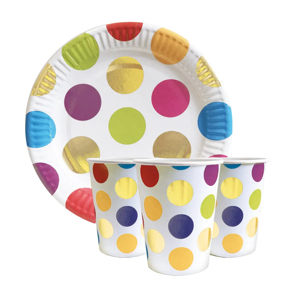 Набор одноразовой посуды " Горох цветной " Тарелки -10 шт Стаканчики - 10 шт