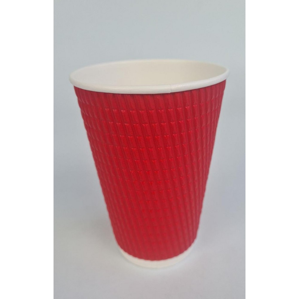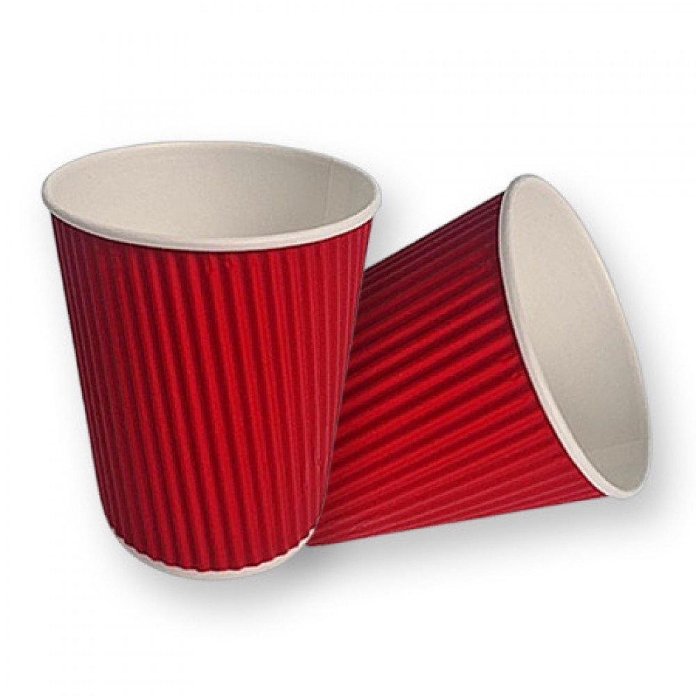 Стакан гофрированный одноразовый бумажный цветной объём 340 мл красные 25 шт/уп стаканчики для кофе