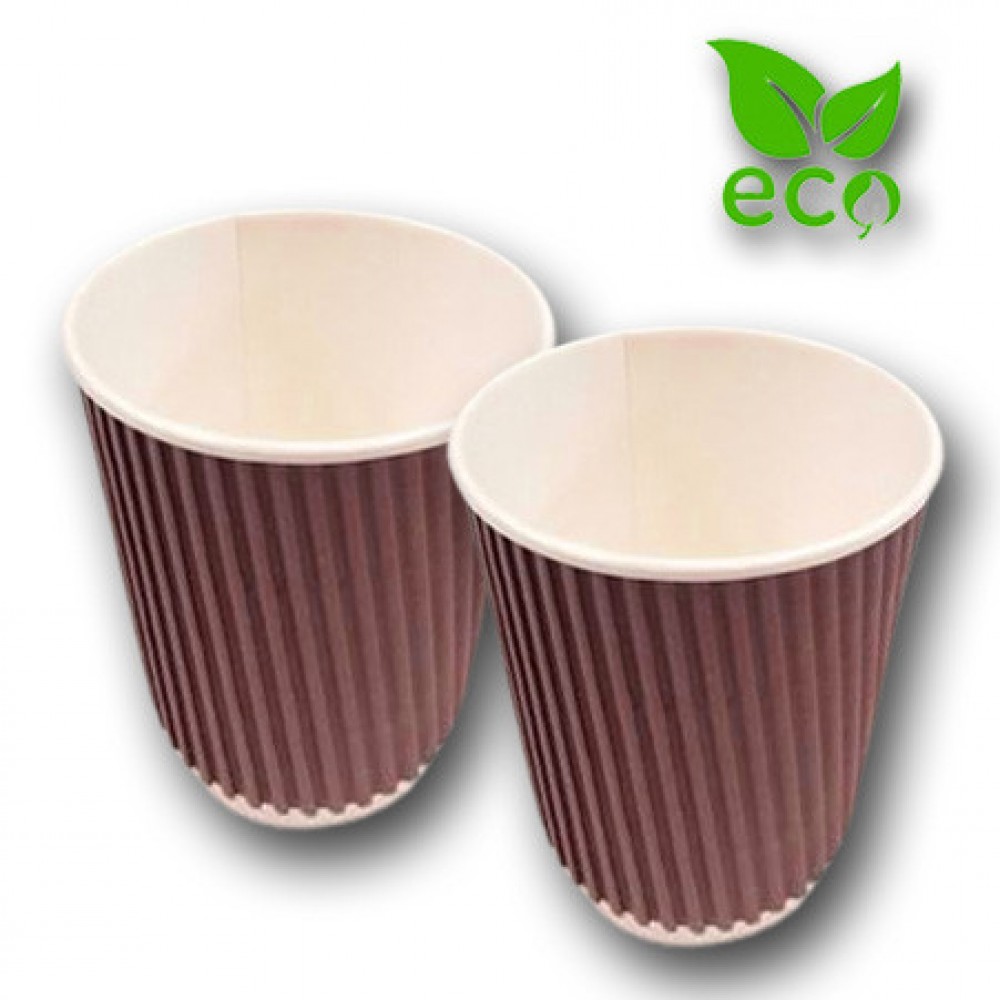 Стакан одноразовый бумажный гофрированный объём 250 мл коричневый 20 шт/уп.