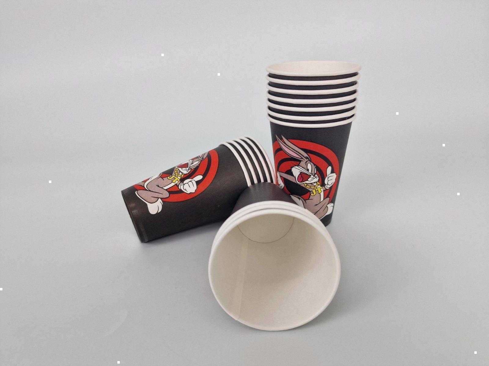 Бумажные стаканы и другая бумажная посуда изготовлены из высококачественного, прочного, тонкого картона. Внешняя сторона бумажных стаканов покрыта ламинацией. Ламинация внешней стороны бумажной посуды предотвращает преждевременное размокание посуды. Поскольку без ламинации внешней стороны бумажных стаканов произойдет следующее:наливая холодную жидкость в стакан, образуется конденсат на обратной стороне бумажных стаканчиков, под воздействием которого бумажная посуда быстрее размокает и утрачивает свои функции. На внешнюю сторону бумажных стаканов нанесены привлекательные рисунки, благодаря которым одноразовая посуда имеет привлекательный, праздничный вид.