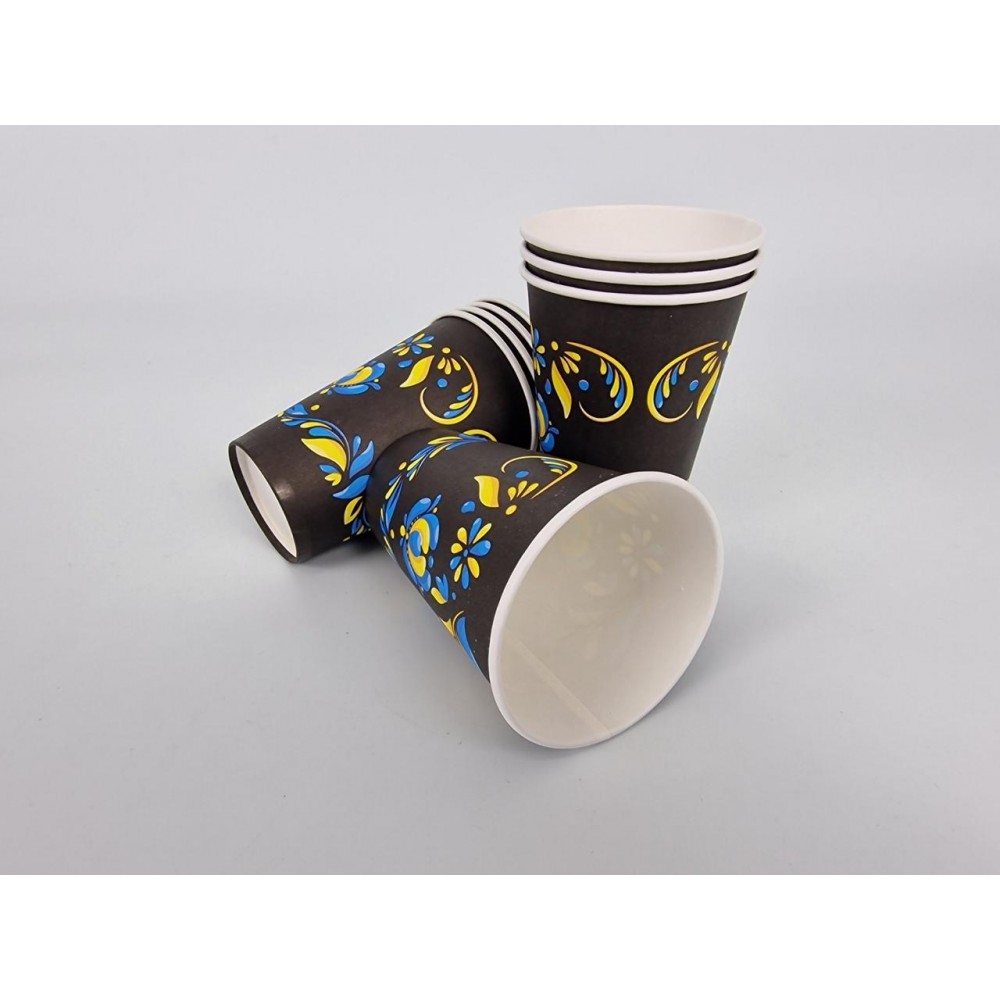 Бумажные стаканы и другая бумажная посуда изготовлены из высококачественного, прочного, тонкого картона. Внешняя сторона бумажных стаканов покрыта ламинацией. Ламинация внешней стороны бумажной посуды предотвращает преждевременное размокание посуды. Поскольку без ламинации внешней стороны бумажных стаканов произойдет следующее:наливая холодную жидкость в стакан, образуется конденсат на обратной стороне бумажных стаканчиков, под воздействием которого бумажная посуда быстрее размокает и утрачивает свои функции. На внешнюю сторону бумажных стаканов нанесены привлекательные рисунки, благодаря которым одноразовая посуда имеет привлекательный, праздничный вид.