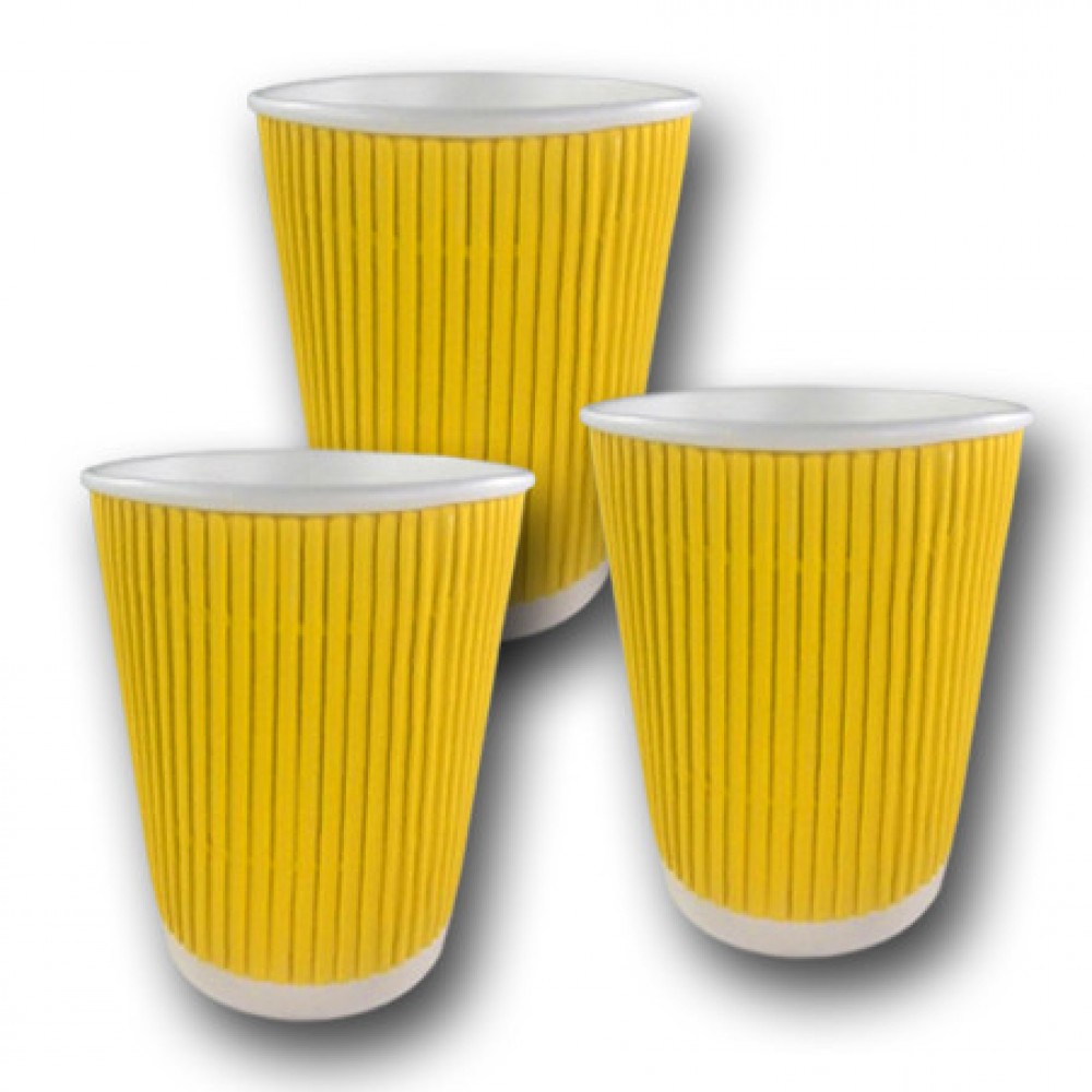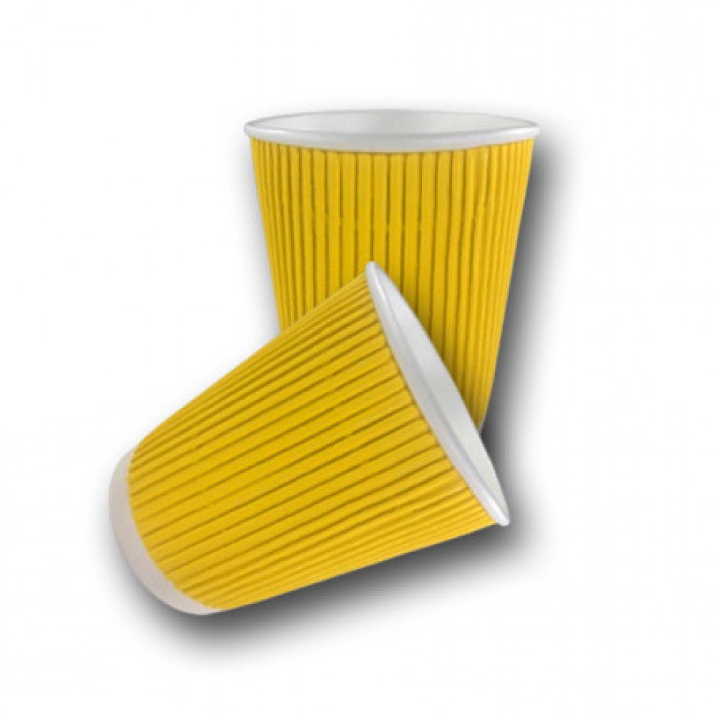 Стаканы гофрированные бумажные одноразовые объёмом 400 мл желтые 15 шт/уп.