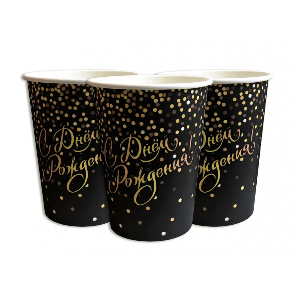 Стаканы одноразовые бумажные детские " С Днём Рождения " конфетти 10 шт/уп