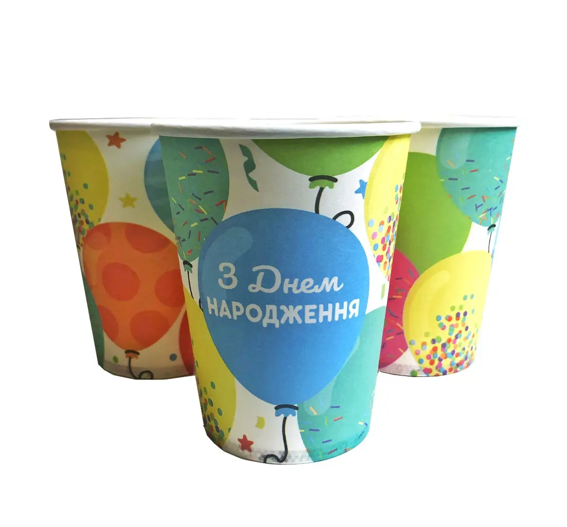 Стаканы одноразовые бумажные детские " З Днем Народження шарики" 10 шт./уп