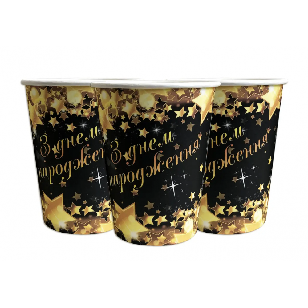 Стаканы одноразовые бумажные детские " З Днем Народження " звёзды 10 шт/уп