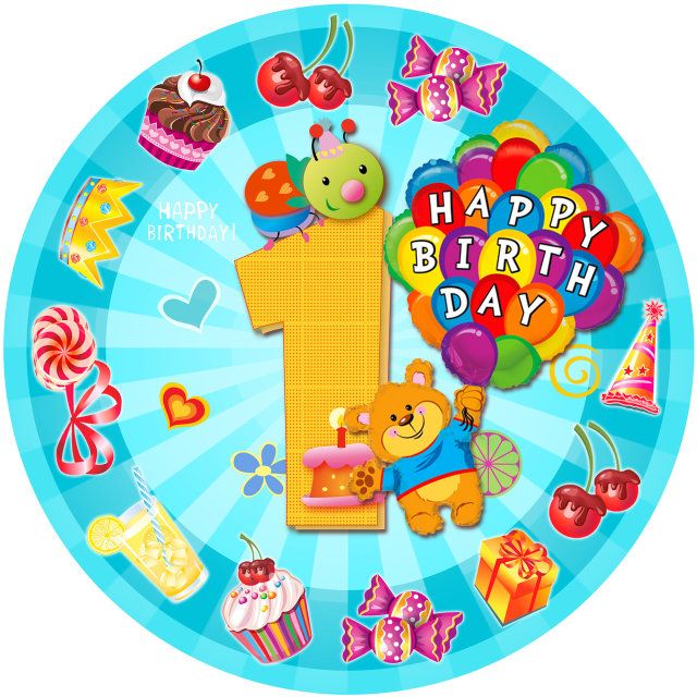 Тарелки бумажные одноразовые детские " Первый год жизни голубая ". 18 см.10 шт.