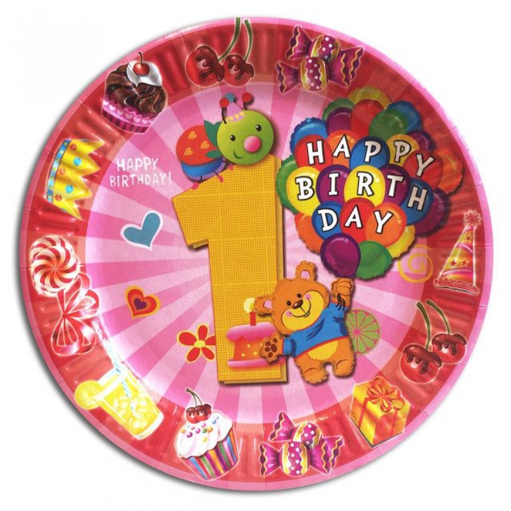 Тарелки бумажные одноразовые детские " Первый год жизни розовая ". 18 см.10 шт.