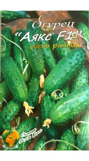 Огурец АяксF1 Среднеранний сорт огурца. В плодоношение вступает через 52-56 дней после всходов. Аякс -Пчелоопыляемый, урожайный гибрид. Плоды эллипсовидной формы, зеленые с размытыми полосами, крупнобугорчатые, черношипые. Вкусовые качества свежих, консервированных и соленых огурцов высокие. Устойчив к болезням. Для выращивания в открытом и закрытом грунте грунте.