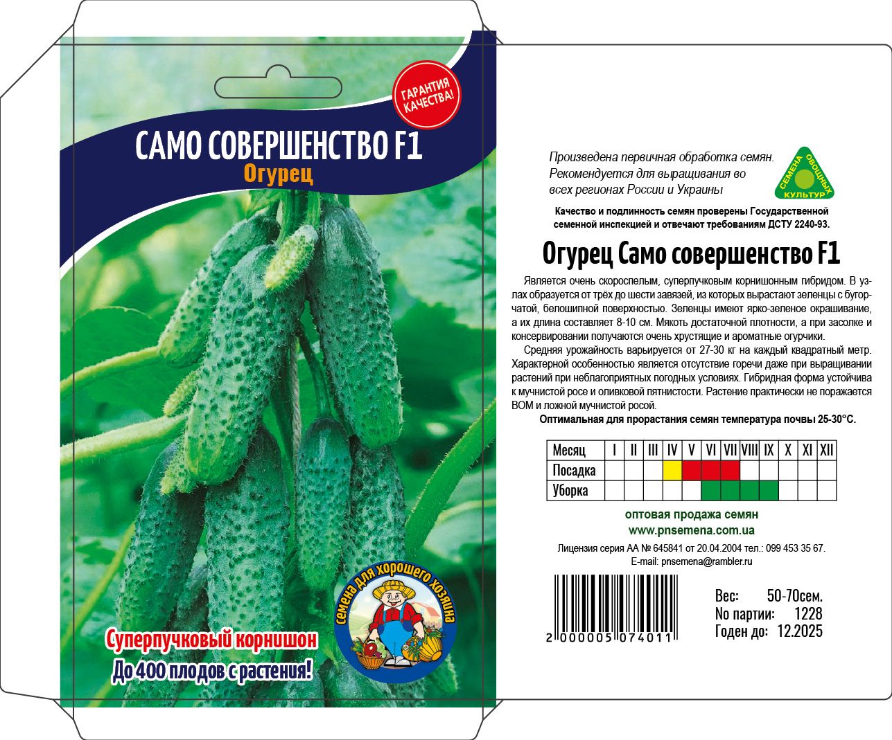 Является очень скороспелым, суперпучковым корнишонным гибридом. В узлах образуется от трех до шести завязей, из которых вырастают зеленцы с бугорчатой, белошипной поверхностью. Зеленцы имеют ярко-зеленое окрашивание, а их длина составляет 8-10 см. Мякоть достаточной плотности, а при засолке и консервировании получаются очень хрустящие и ароматные огурчики.