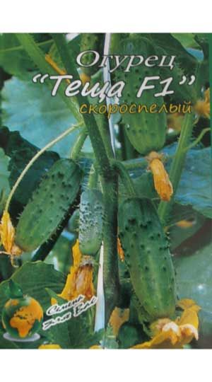 Огурец Теща F1 Скороспелый сорт огурца (45-48 день от всходов до плодоношения) партенокарпический гибрид женского типа цветения. Предназначен для выращивания в открытом грунте и пленочных теплицах. Посев на рассаду в конце апреля. Высадка в грунт в конце мая – начале июня в фазе 3-4-х настоящих листьев. Посев непосредственно в грунт – в середине-конце мая. Схема посадки 50х50 см. Зеленец длиной 11-13 см, массой 100-120 г, бугорчатый, бурошипый, без горечи. В пазухе листа образуется до 3-4-х завязей. Использование плодов универсальное (в свежем виде, засолка, маринование). Прекрасный, нежный вкус плодов. Гибрид холодостойкий, обладает комплексной устойчивостью к основным заболеваниям огурца.