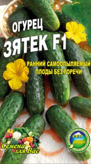 Огурец Зятек F1 Скороспелый гибрид (43-48 дней от всходов до плодоношения) пчелоопыляемый гибрид, для выращивания в открытом грунте и под временными пленочными укрытиями. Гибрид удачно сочетает великолепные вкусовые качества, хрустящих, ароматных плодов и универсальность их использования. Прочные корнишоны прекрасно подойдут для бочкового посола, маринования, а также для приготовления свежих летних салатов. Зеленец длиной 9-11 см, массой 80-100 г, бугорчатый, зеленый с белыми полосами, черношипый, без горечи. Сорт гибрида устойчив к корневым гнилям, настоящей и ложной мучнистым росам