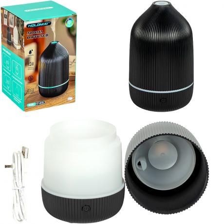 Сучасний аромадифузор з рифленим вертикальним дизайном та м’яким LED-підсвічуванням. Витриманий у білому кольорі — ідеально підходить до будь-якого інтер’єру. Працює за ультразвуковою технологією — тихо та ефективно зволожує повітря. Об’єм резервуару — 100 мл. Компактні розміри (85×85×150 мм), вага — 213 г. Живлення через USB (5V, 1A), потужність — 1,5 Вт. Корпус виготовлений з якісного ABS+PP. Чудово підходить для дому, офісу чи як подарунок.