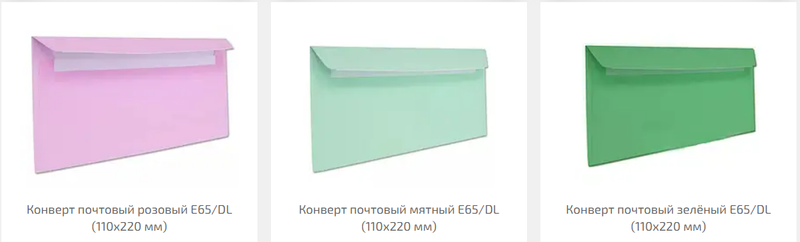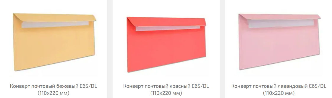 Почтовый конверт из бумаги формата Е65.