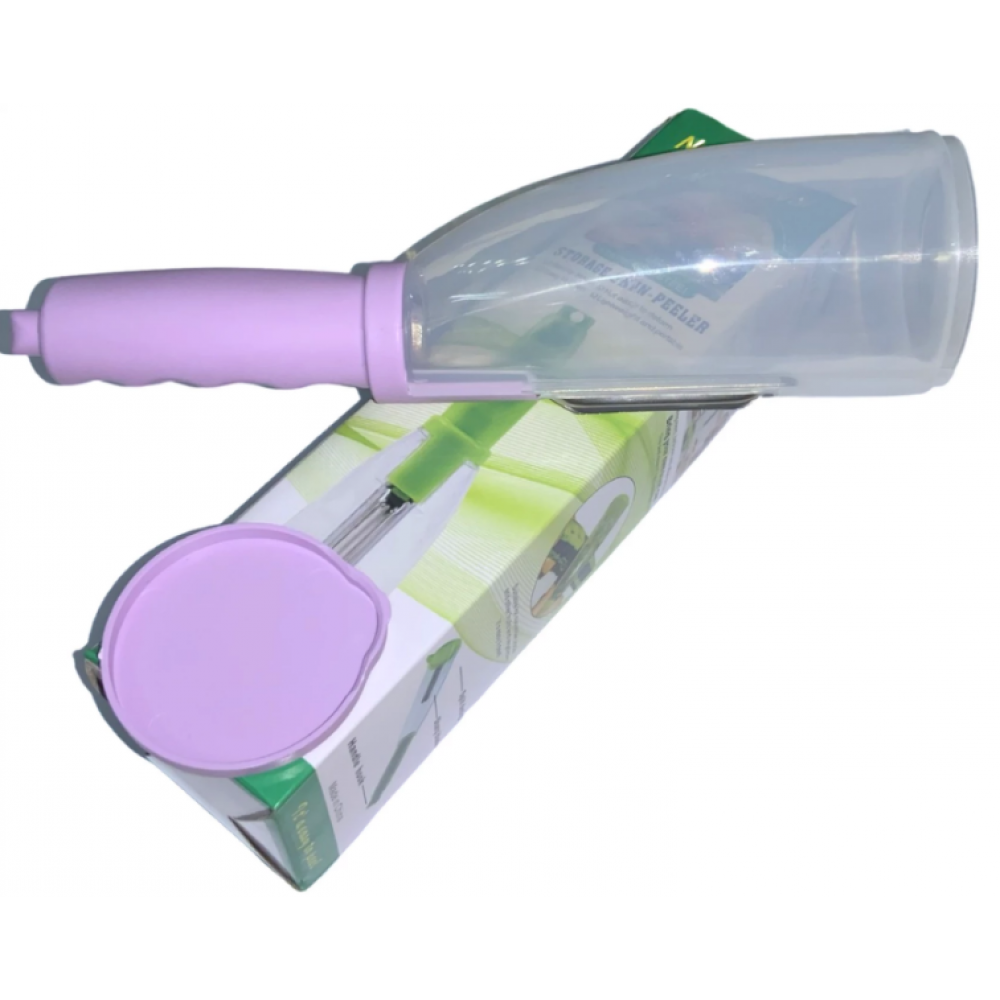 Матерал: корпус - пластмасса, лезвие, терка - нержавеющая сталь. Размер: Длина - 20см Диаметр контейнера - 5см Длина лезвия - 4 см Длина ручки 7 см В наборе - овощечистка с крышкой