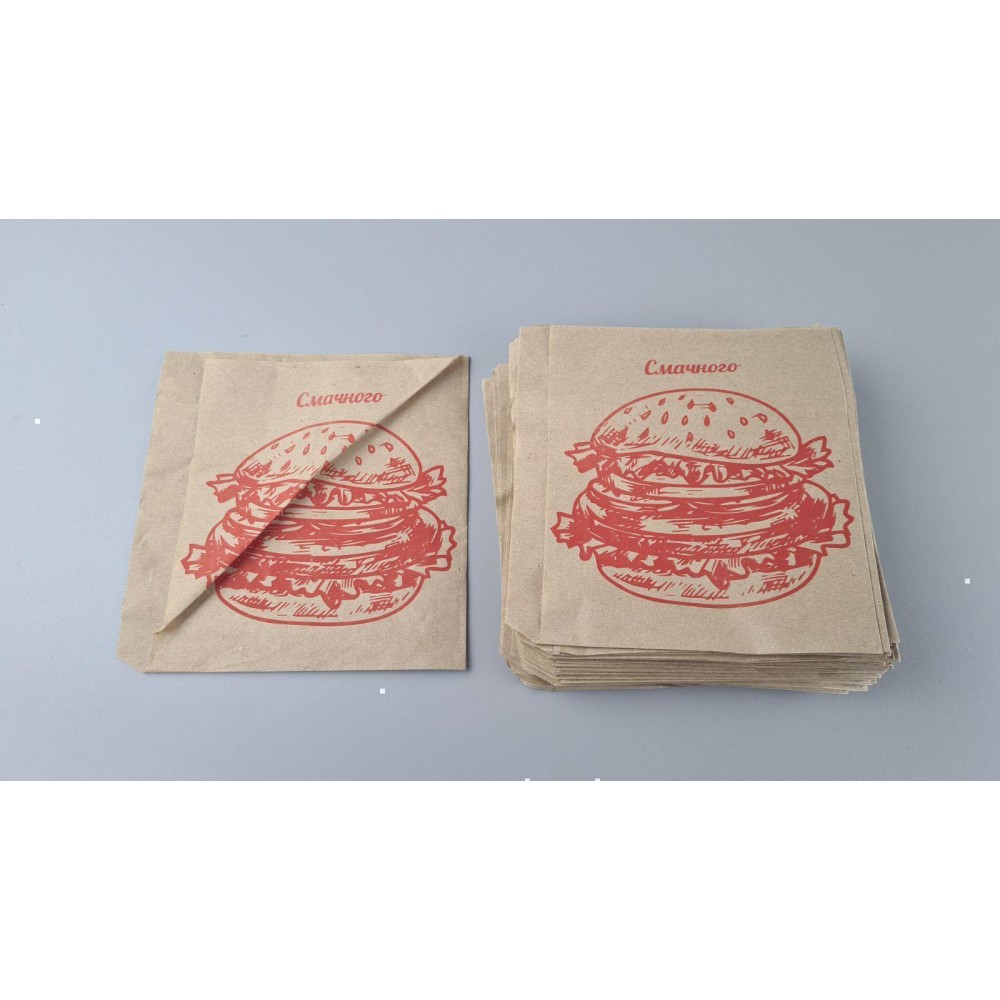 Пакет бумажный крафт бурий Уголок 170х0х170, 40г/м2, печать бургер (100 шт)