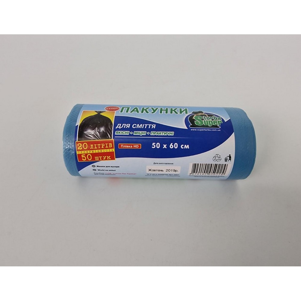 Мусорные пакеты (LD) размер 50х60 см объём 35 литров "Супер Торба NEW " синие 15 шт/рул.