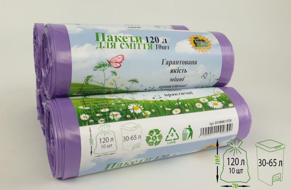 Мусорный пакет объемом 120 литров, размеры 70х110см, (10шт LD) Супер Торба (1 рул)