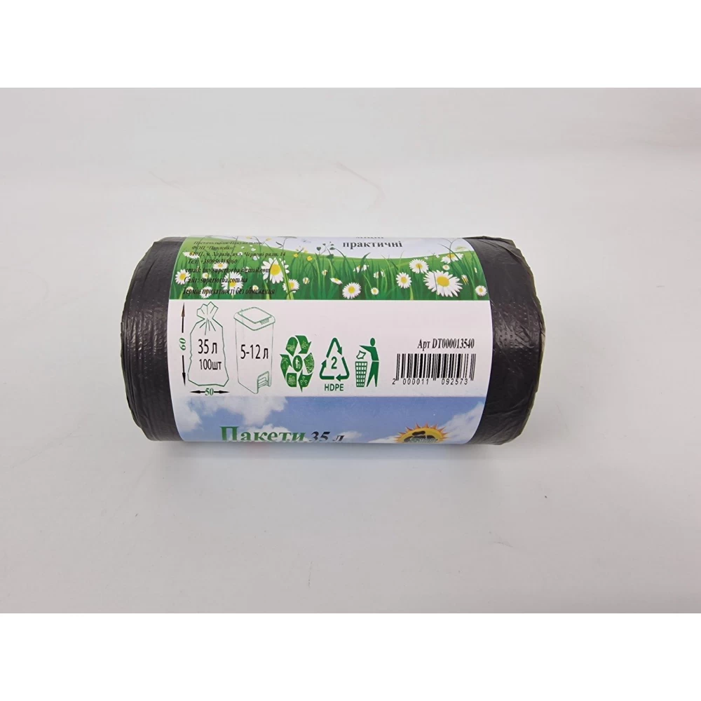 Мусорный полиэтиленовый пакет объём 35 литров 100 шт в рулоне размер 50х60 HD "Супер Торба" черный