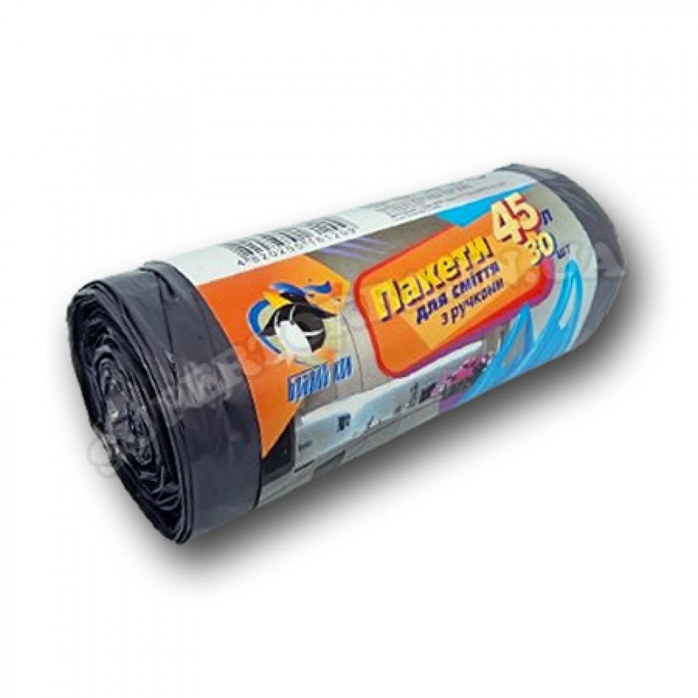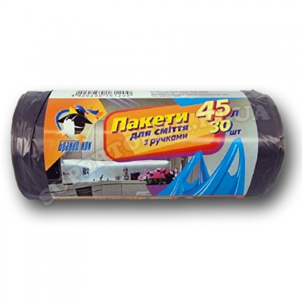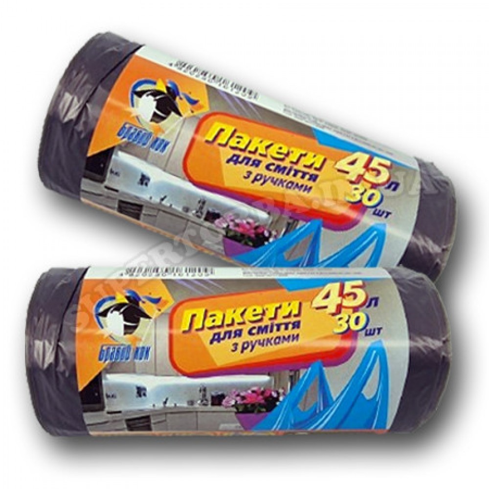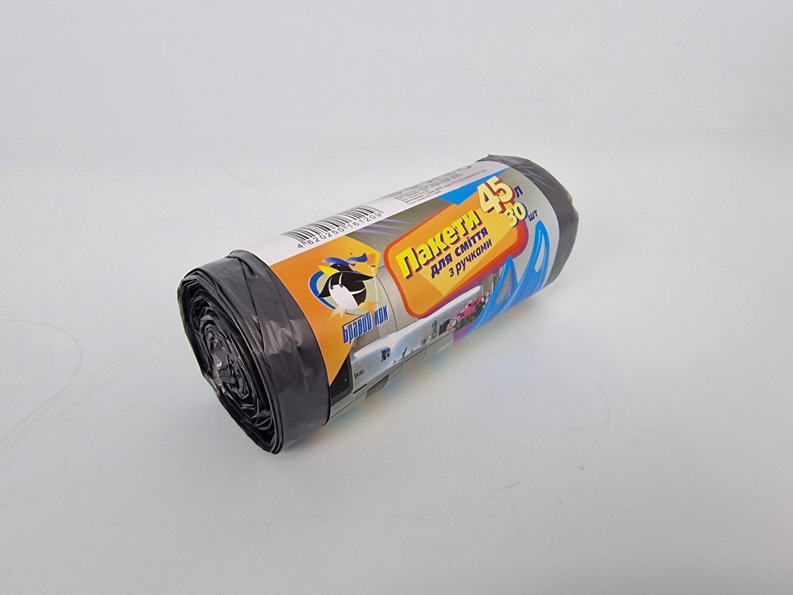 Пакет полиэтиленовый мусорный размер 55х70 объём 45 литров с ручками "Бравый кок" 30 шт/рул.