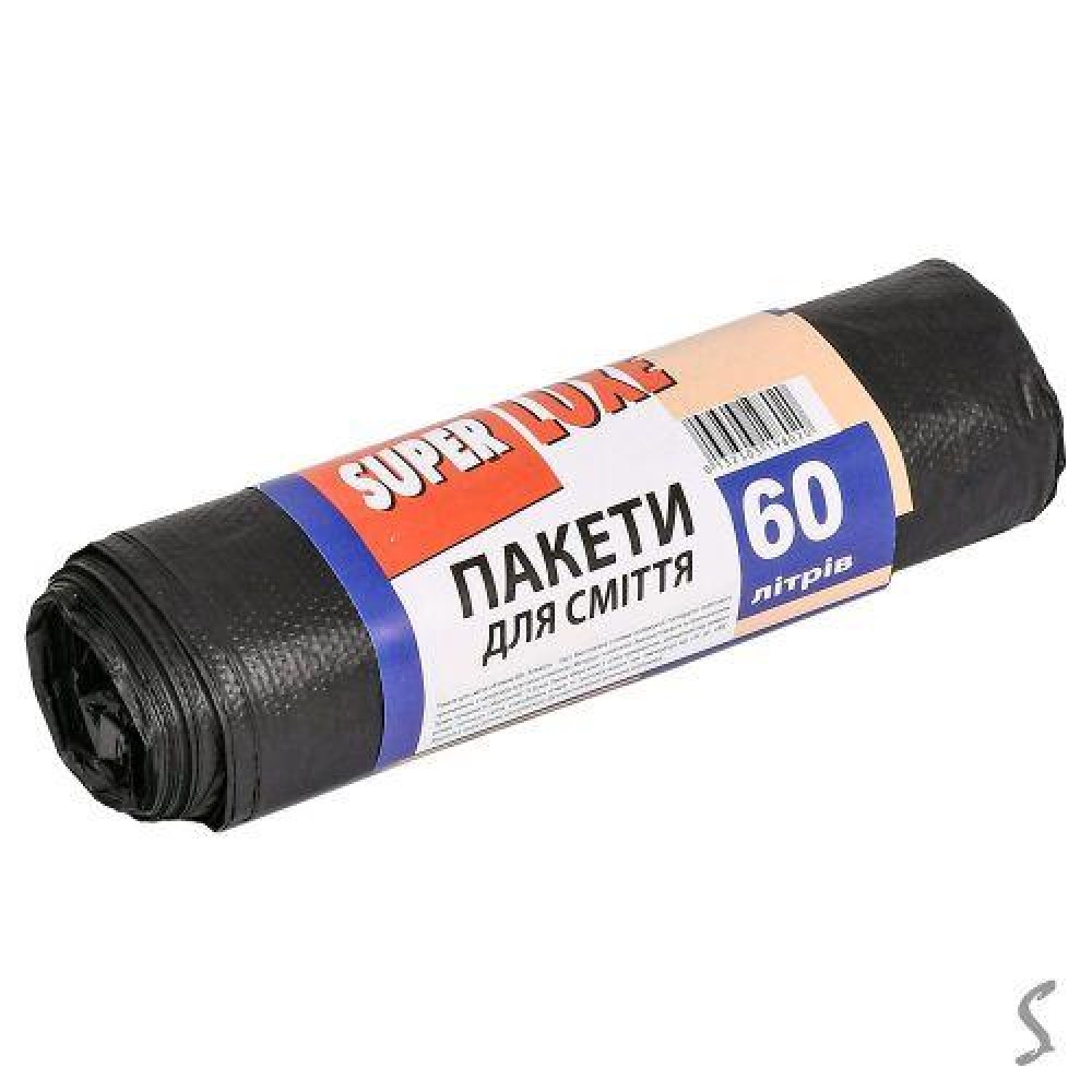 Мешки (пакеты) для мусора, полиэтиленовые 60литров (40шт) КОК черный (1 рул)