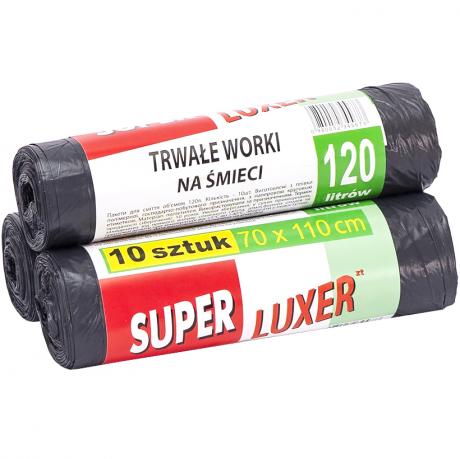 Ці пакети для сміття Super Luxs мають розмір 70х110 см та об'єм 120 літрів. У наборі 10 штук.