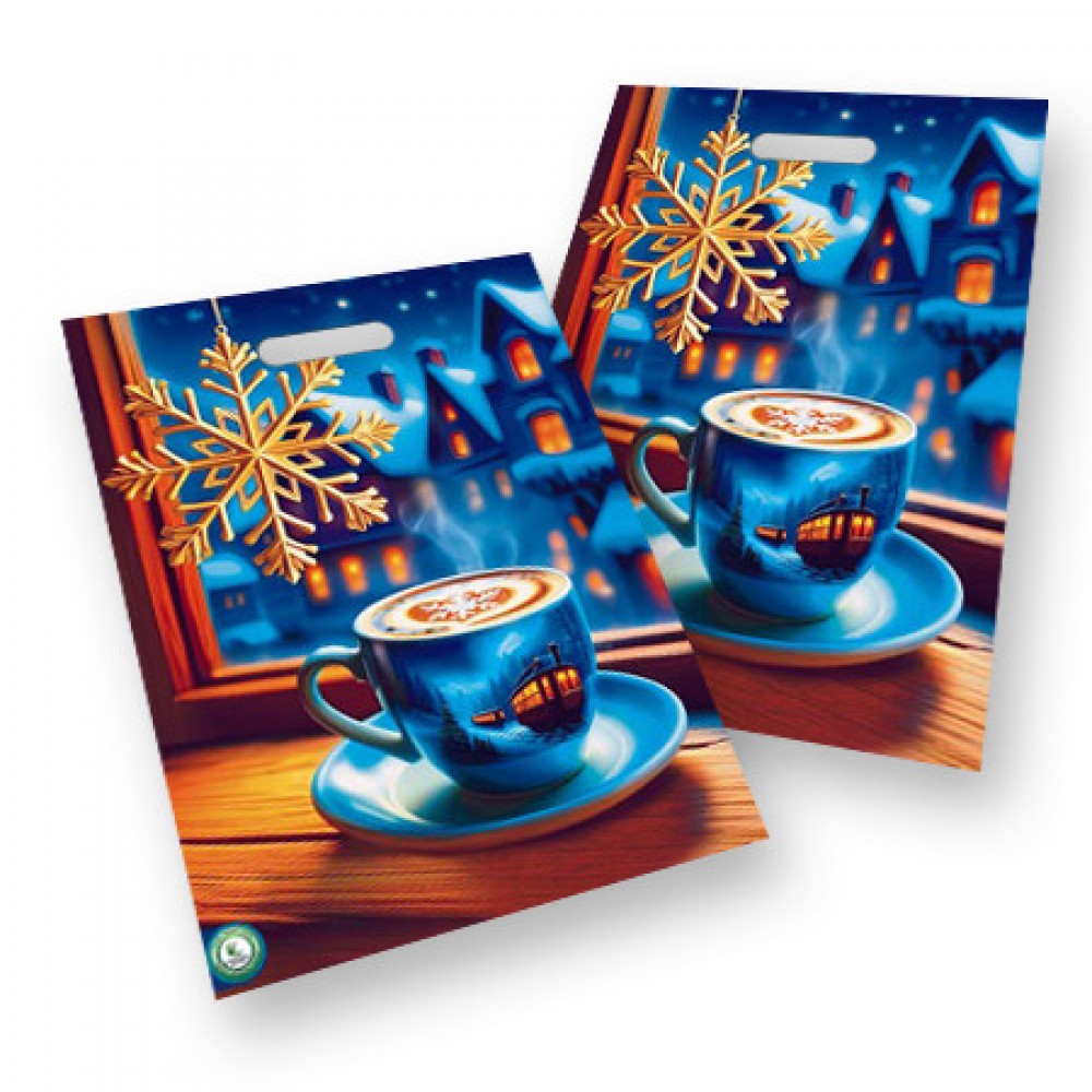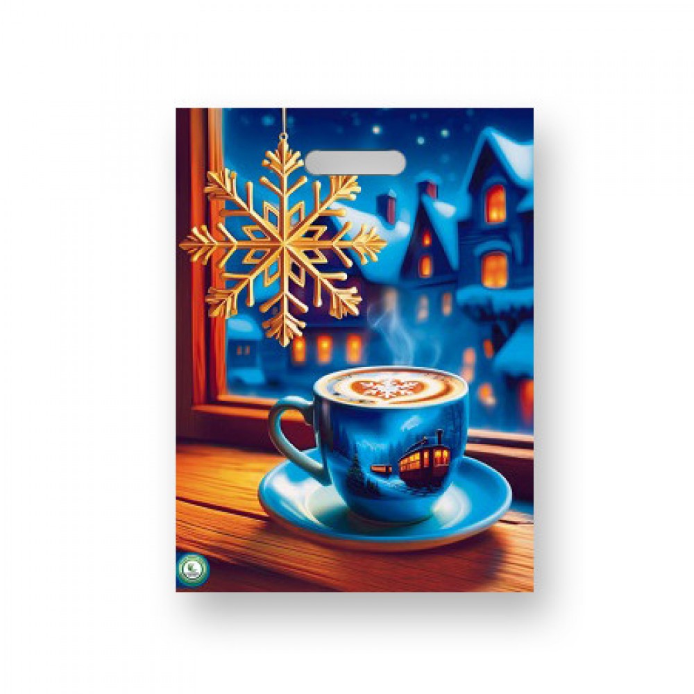 Новогодний пакет с вырубной ручкой 28,5х38 "Голубая чашка" Комсерв 100 шт/уп.