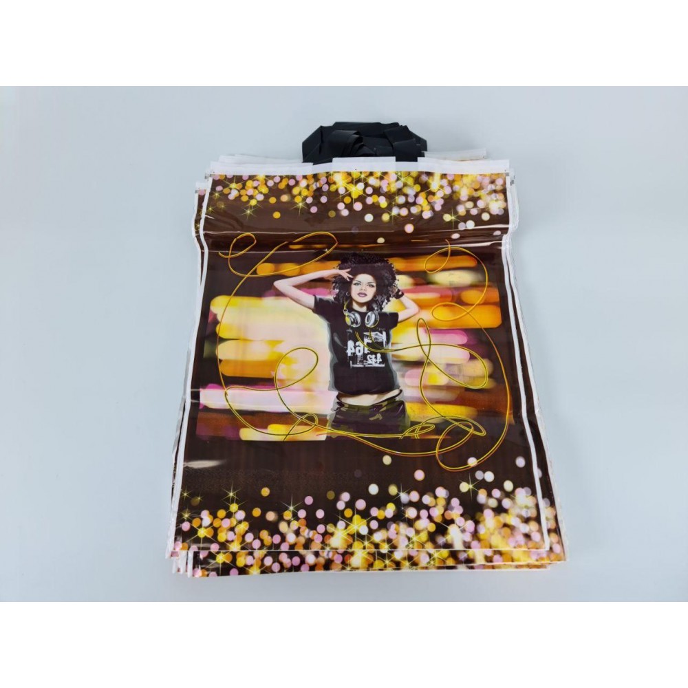 Полиэтиленовый пакет с прорубной ручкой (пакет Банан) – Название его произошло из-за оригинального вида, где по центру в верхней части пакета ,вырубается ручка что делает пакет более удобным в использовании. Этот вид полиэтиленового пакета больше относиться к имедживому классу. Пакет имеет презентабельный вид, в основном используется как рекламный, из-за его эластичности. Рисунок который наносится на этот вид полиэтиленового пакета никогда не искажается через высокую плотность и гладкость полиэтилена. В пакете присутствует донная складка которая располагается внизу пакета, что делает его более вместительным и компактным. Пакеты такого типа часто используются в магазинах, бутиках,и в других сферах .