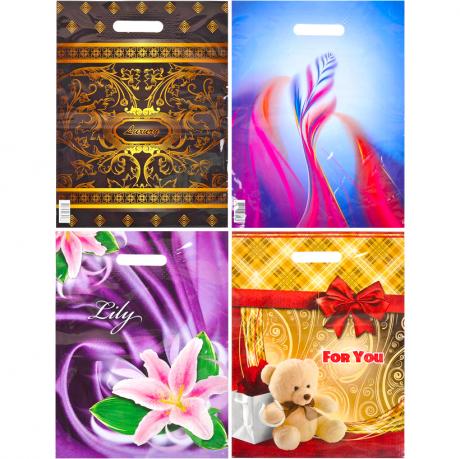 Пакет ламінований поліетиленовий з ручками "банан". Розмір: 30х40 см. В упаковці 50 штук.