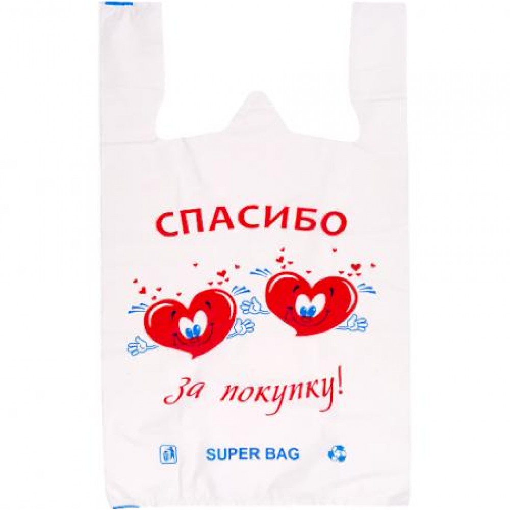 Пакет "Спасибі" (ширина по дну + бічний закот *2) висота пакету з урахуванням ручки =(280 + 70 * 2) 500 для харчових продуктів, 200 штук в упаковці.