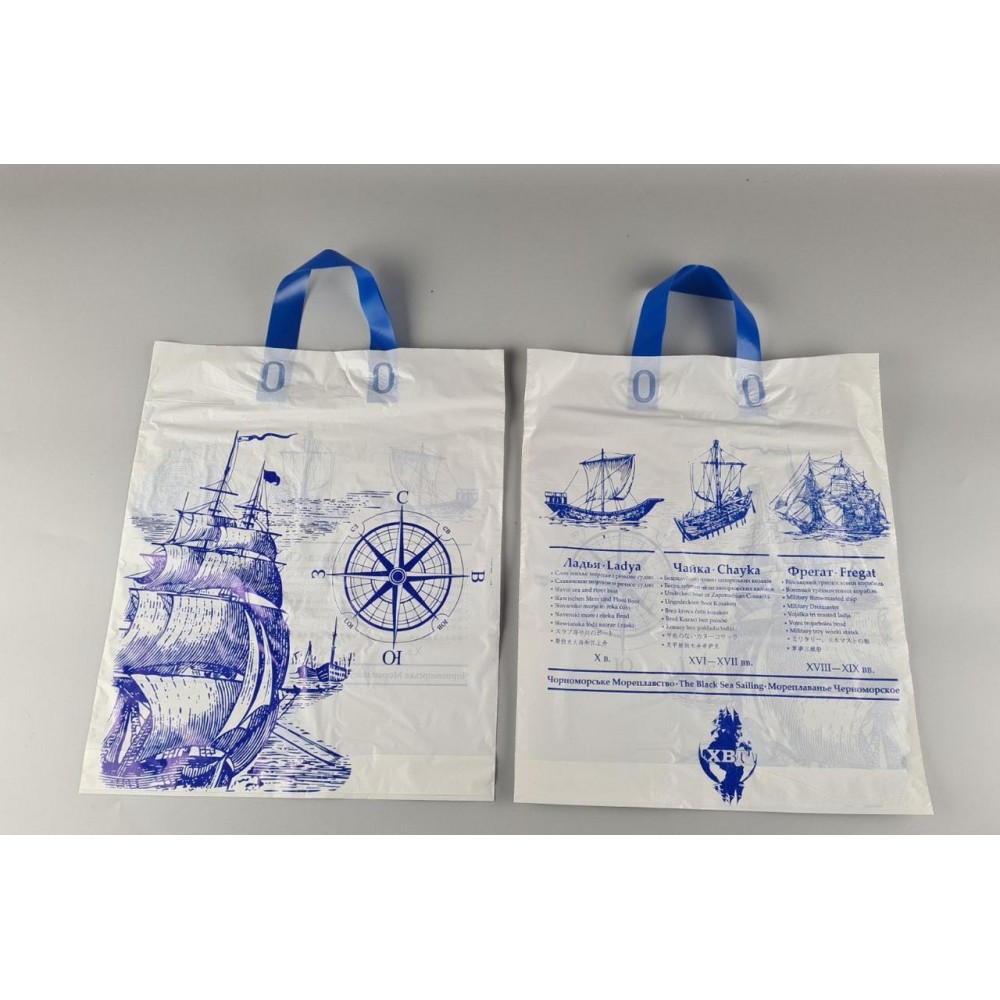 Полиэтиленовый пакет с прорубной ручкой (пакет Банан) – Название его произошло из-за оригинального вида, где по центру в верхней части пакета ,вырубается ручка что делает пакет более удобным в использовании. Этот вид полиэтиленового пакета больше относиться к имедживому классу. Пакет имеет презентабельный вид, в основном используется как рекламный, из-за его эластичности. Рисунок который наносится на этот вид полиэтиленового пакета никогда не искажается через высокую плотность и гладкость полиэтилена. В пакете присутствует донная складка которая располагается внизу пакета, что делает его более вместительным и компактным. Пакеты такого типа часто используются в магазинах, бутиках,и в других сферах .