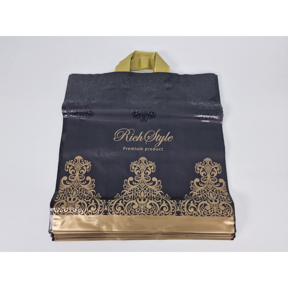 Пакет с петлевой ручкой 45*43( 65мкм )"Кофе Мокко черный Ренпако (25 шт)
