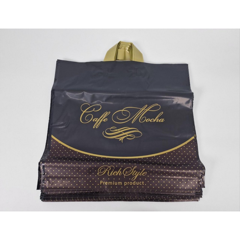 Пакет с петлевой ручкой 45*43( 65мкм )"Кофе Мокко черный Ренпако (25 шт)
