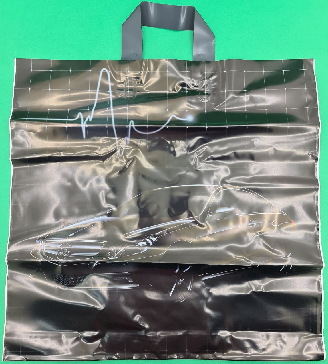 Полиэтиленовый пакет с прорубной ручкой (пакет Банан) – Название его произошло из-за оригинального вида, где по центру в верхней части пакета ,вырубается ручка что делает пакет более удобным в использовании. Этот вид полиэтиленового пакета больше относиться к имедживому классу. Пакет имеет презентабельный вид, в основном используется как рекламный, из-за его эластичности. Рисунок который наносится на этот вид полиэтиленового пакета никогда не искажается через высокую плотность и гладкость полиэтилена. В пакете присутствует донная складка которая располагается внизу пакета, что делает его более вместительным и компактным. Пакеты такого типа часто используются в магазинах, бутиках,и в других сферах .